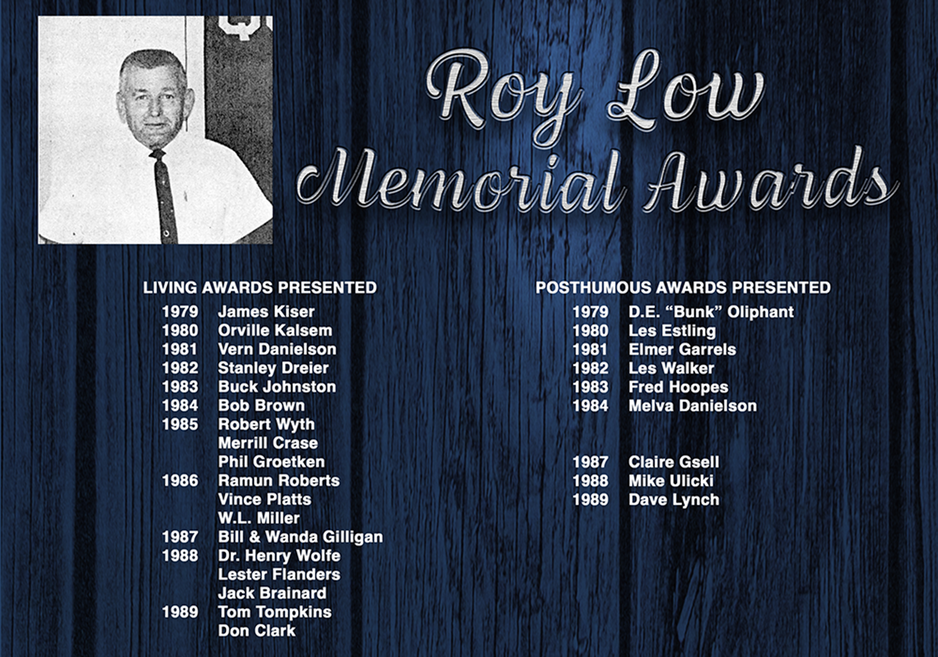 The Roy Low Memorial Award was established in 1979 as a tribute to the late Roy Low, a charter member of IQHA. Funded by private donations, annual awards were presented, both Living and Posthumous, to persons 60 or older who had made a significant impact on the Iowa Quarter Horse Association. Recipients were chosen by these merits by an unknown committee of Roy’s peers and were presented by his widow, Helen at the annual awards banquet. At Helen’s request, the award was ended after ten years. Over this period a very deserving and dedicated group of true IQHA Horsemen and Horsewomen or their families proudly accepted the award given in honor of one of the greatest friends of IQHA.